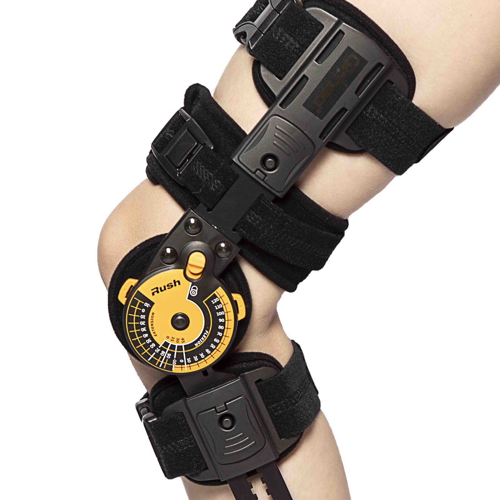 После тяжелых травм коленного сустава врачи обычно рекомендуют функциональный покой поврежденному суставу, а затем поэтапно проводят мобилизацию сустава. С помощью шарнира можно ограничить подвижность сустава в соответствии с индивидуальным планом лечения. Амплитуда сгибания может быть задана в пределах от 0° до 120° с шагом 10°, а разгибания — в пределах от -10° до 90° с шагом 10°.